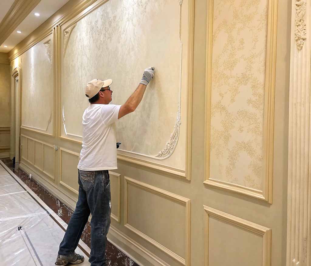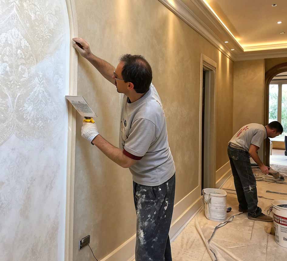 Опытный мастер не только соблюдёт технологию, но и поможет подобрать нужный оттенок, блеск и фактуру под освещение комнаты.