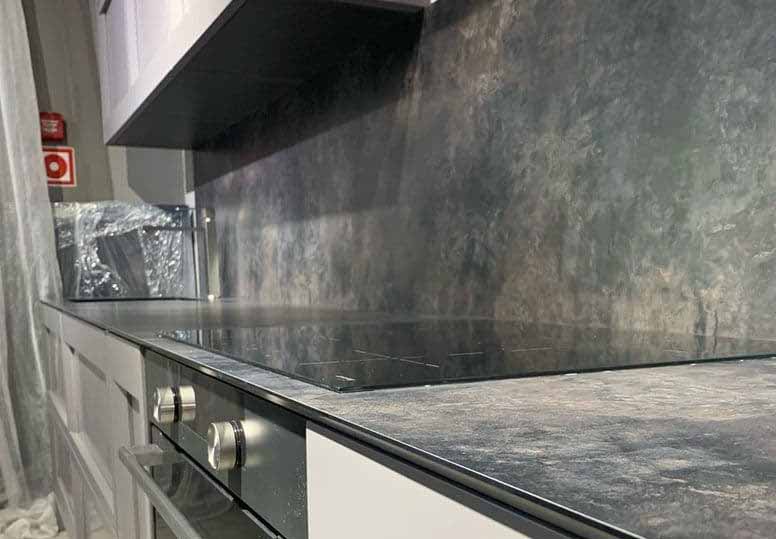 Актуальные цвета: пепельно-серый, мокрый асфальт, графит. Хорошо сочетается с чёрным металлом и тёплой деревянной мебелью.